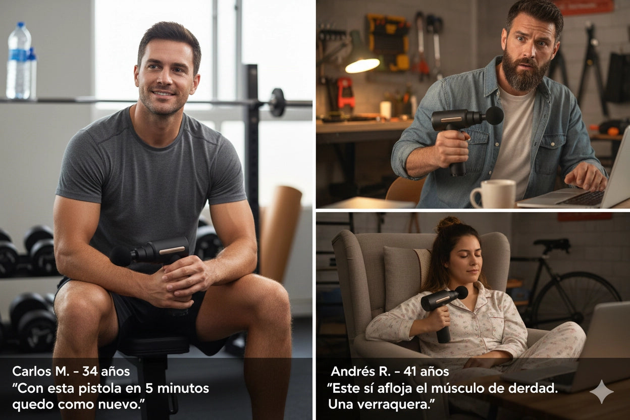 Muchos masajeadores prometen, pero a los 5 minutos se calientan, suenan horrible o no alcanzan músculos grandes.